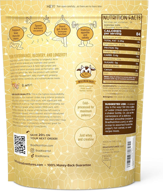 2lb Grass Fed Whey Protein Isolate Powder with Creatine - All-Natural Superfuel - USA Sourced - Unflavored