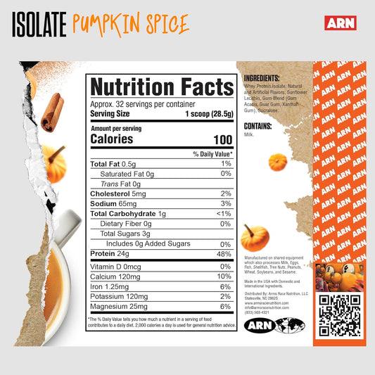 ARN Isolate Whey Protein Powder - Pumpkin Spice Flavor (32 Servings) by Arms Race Nutrition