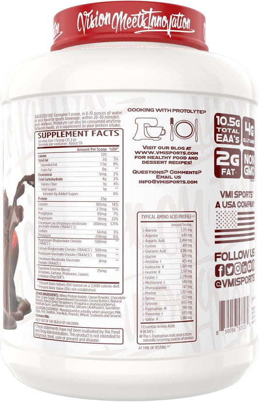 VMI Sports Protolyte Whey Isolate Protein Powder - Low-Calorie 100% Whey Protein Isolate - Non-GMO, Low Sugar, Lactose Free, Gluten Free