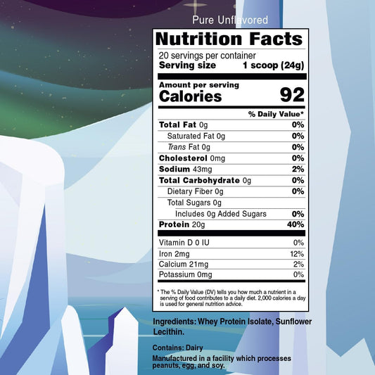 High Quality Unflavored Whey Protein Isolate Powder - 20g Protein per Serving for Bariatric Diets - 20 Servings