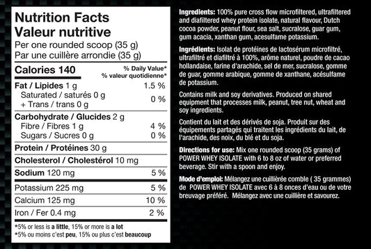 BioX Power Whey Isolate Chocolate Peanut Butter Protein Powder - 100% Ultra-Pure, 29-31g Protein, 0g Sugar, No Fillers - 2lb