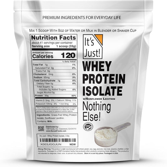 Premium Grass-Fed Whey Protein Isolate - Unflavored, Made in USA, rBGH/RBST Hormone Free, 90% Protein, Low Carb, No Sugar - 3lb