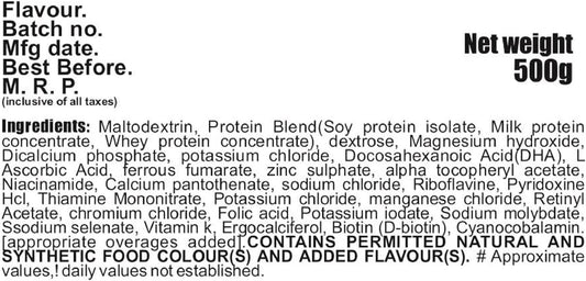Kids Protein Powder Blend (Whey, Soy, Milk) for Growth & Development, Ages 2-12 & Teens, 500g Strawberry Flavor