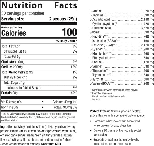 Metagenics Perfect Protein Whey - Chocolate Flavor - 30 Servings - High-Quality Whey Isolate & Hydrolyzed Protein