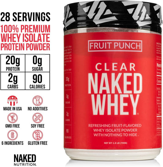 Naked Clear Whey Protein Isolate - Fruit Punch Flavor, GMO-Free, No Artificial Sweeteners, Gluten-Free, Soy-Free - 28 Servings