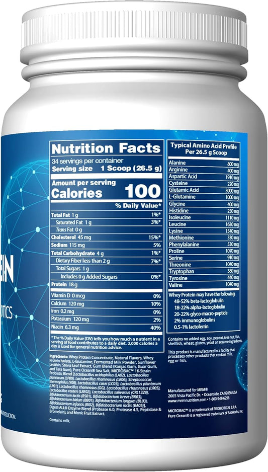 Vanilla Flavored Whey Protein with Probiotics, Digestive Enzymes, and BCAAs - 18g Protein per Serving - Hormone and Antibiotic Free - 33 Servings