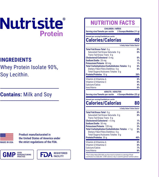 Medsite Nutrisite Nutrition Whey Isolate Protein Powder - Wound Healing & Surgery Recovery Support - Carb, Gluten, & Sacarose Free - Unflavored (9.7 Oz)