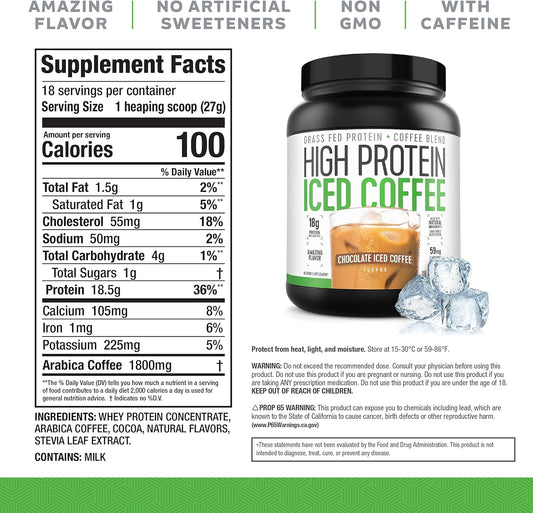 Keto-Friendly Chocolate Iced Coffee with 18g Protein - Natural Ingredients, Low Carb - 18 Servings