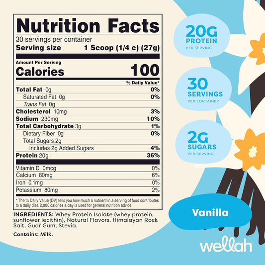Vanilla Whey Protein Isolate - 30 Servings of Wellah Protein Your Whey
