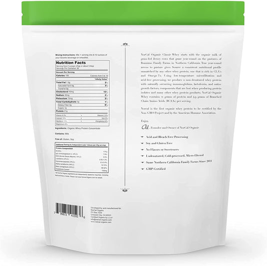 NorCal Organic Grass-Fed Classic Whey Protein Powder - Unflavored - Lecithin-Free - 2lb Bulk Size