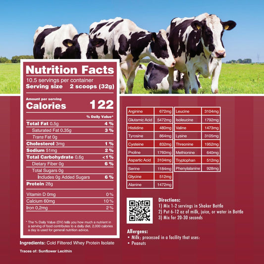 Delicious Chocolate Whey Protein Isolate Powder - 100% Grass Fed, All Natural, No Artificial Ingredients - Gluten & Soy Free