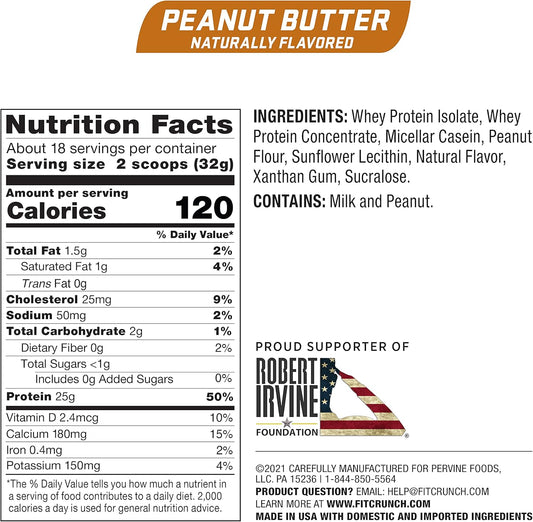 FITCRUNCH Tri-Blend Whey Protein: Keto-Friendly, Low-Calorie, High-Protein, Gluten-Free, Soy-Free - 18 Servings (Peanut Butter)