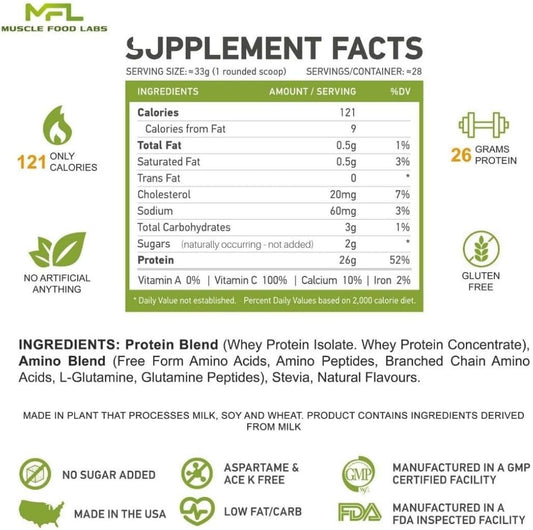MFL Muscle Whey Protein: 28g Protein, 8g BCAAs, Keto Friendly, Low Carbs - Vanilla Bean 2 lbs