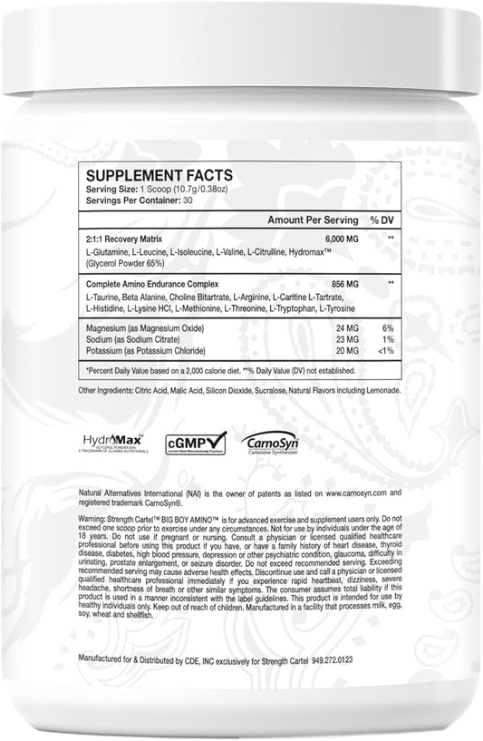 30 Servings of STRENGTH CARTEL Big Boy Aminos Lemon Cake - Muscle-Building Amino Acid Supplement