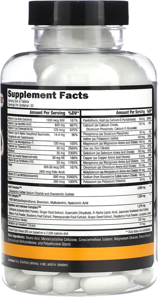 CONTROLLED LABS Orange Triad Iron-Free Multivitamin for Workout, Digestion, Immune Support, and Joint Health - 30 Servings - Muscle Building and Recovery Tablets