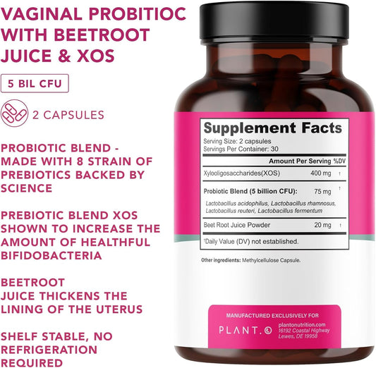 Plant.O Nutrition Vaginal Probiotics - Women's Blend with 4 Lactobacillus Strains for pH Balance & Healthy Vaginal Flora
