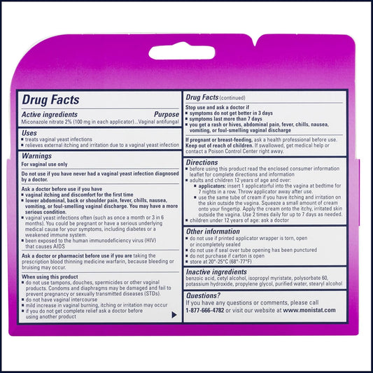 Monistat 7-Day Yeast Infection Treatment for Women - 7 Miconazole Cream Applications with Disposable Applicators - 1 Pack