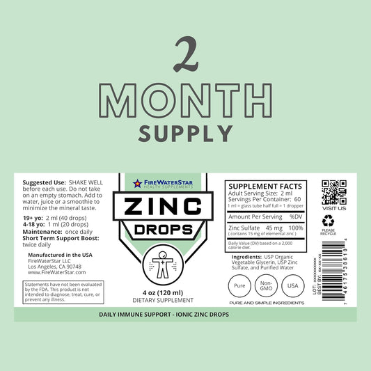 Organic Liquid Zinc Supplement - Immune Support for Adults & Kids - Non-GMO Vegan Drops - 45mg - Boost Immunity, Healthy Skin & Wellness