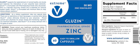 Wilson's Most Trusted Pharmaceutical Grade 50mg Zinc Capsules - Extreme V Gluzin - 60 Count