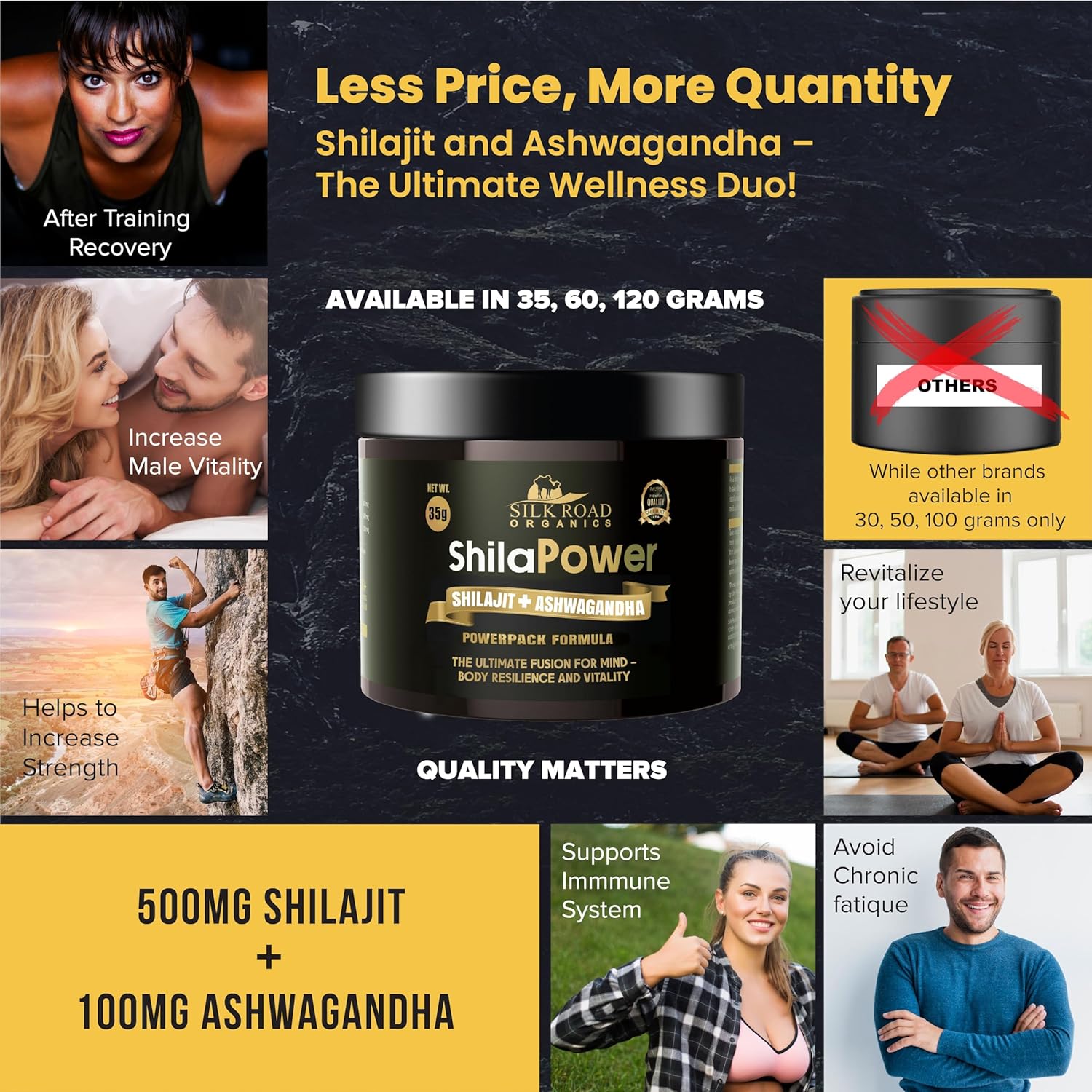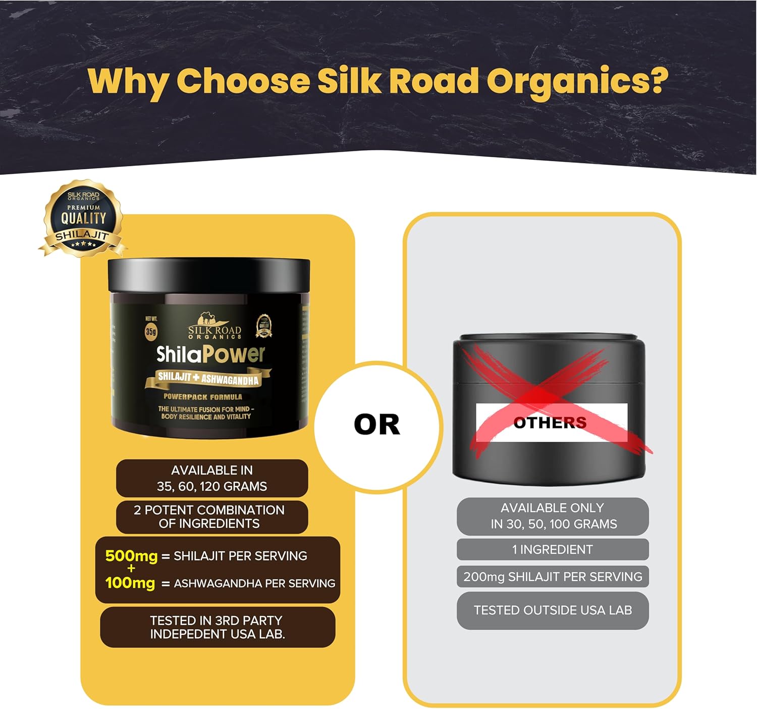 - π΅ππππππ π¬πππππ π©ππππππ: Silk Road Organics Shilajit Resin is a powerful supplement that enhances energy levels, focus, and stamina. Perfect for those seeking a natural way to rejuvenate their body and mind.