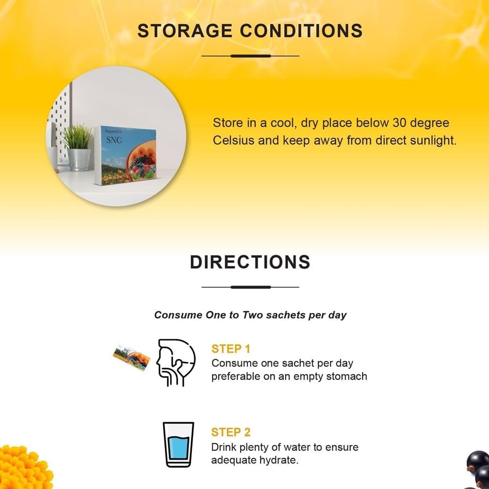 - Consume one sachet per day preferable on am empty stomach, drink plenty of water to ensure adequate hydrate.