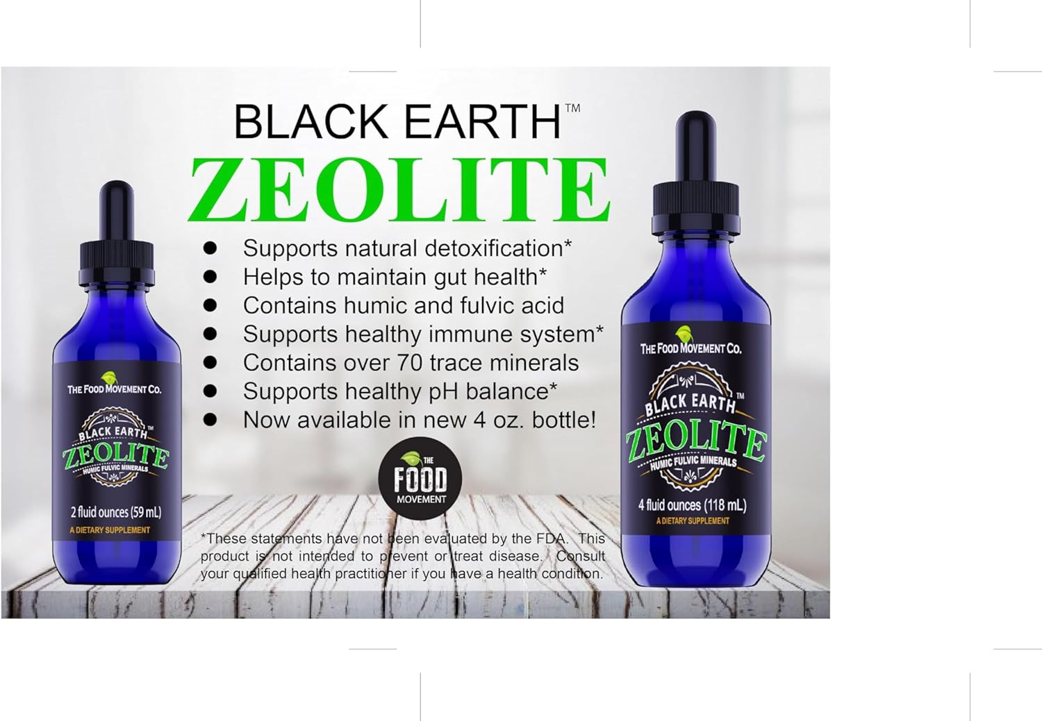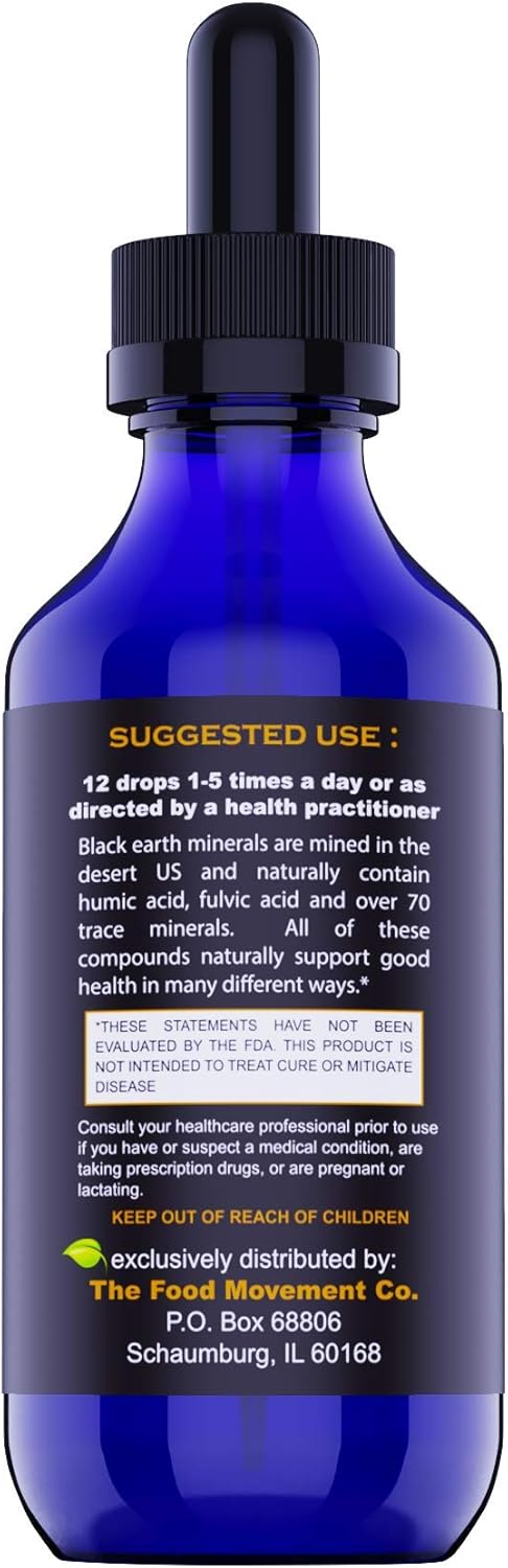 Black Earth Zeolite with Humic Fulvic Acids Trace Minerals Liquid Drops Supplement for Detox, Gut Health, Immune Support - 2oz for Adults and Kids