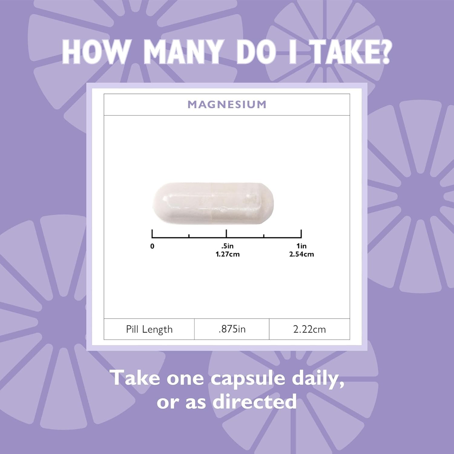 - 100mg of Magnesium: Each of our capsules contains 100 mg of superior magnesium bisglycinate which is known for its superior absorption and gentleness on the stomach