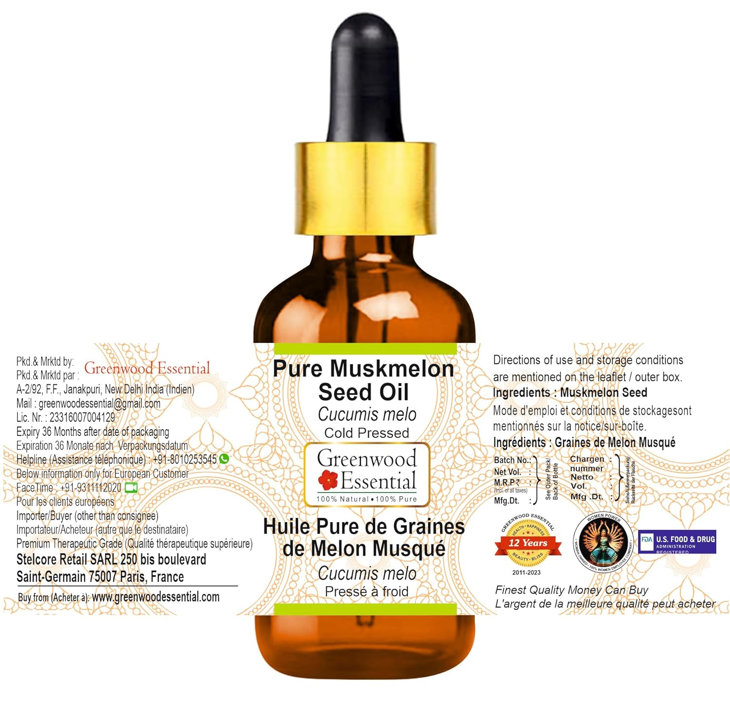 - Quantity - 5ml (0.16 oz), Container Type - High Quality Amber Glass Bottle with Glass Dropper designed to preserve potency. Method of Extraction - Cold Pressed, Botanical Name -Cucumis melo, Daily skin care Regimen, Lightweight, Non-greasy, Non-sticky, For all seasons.
