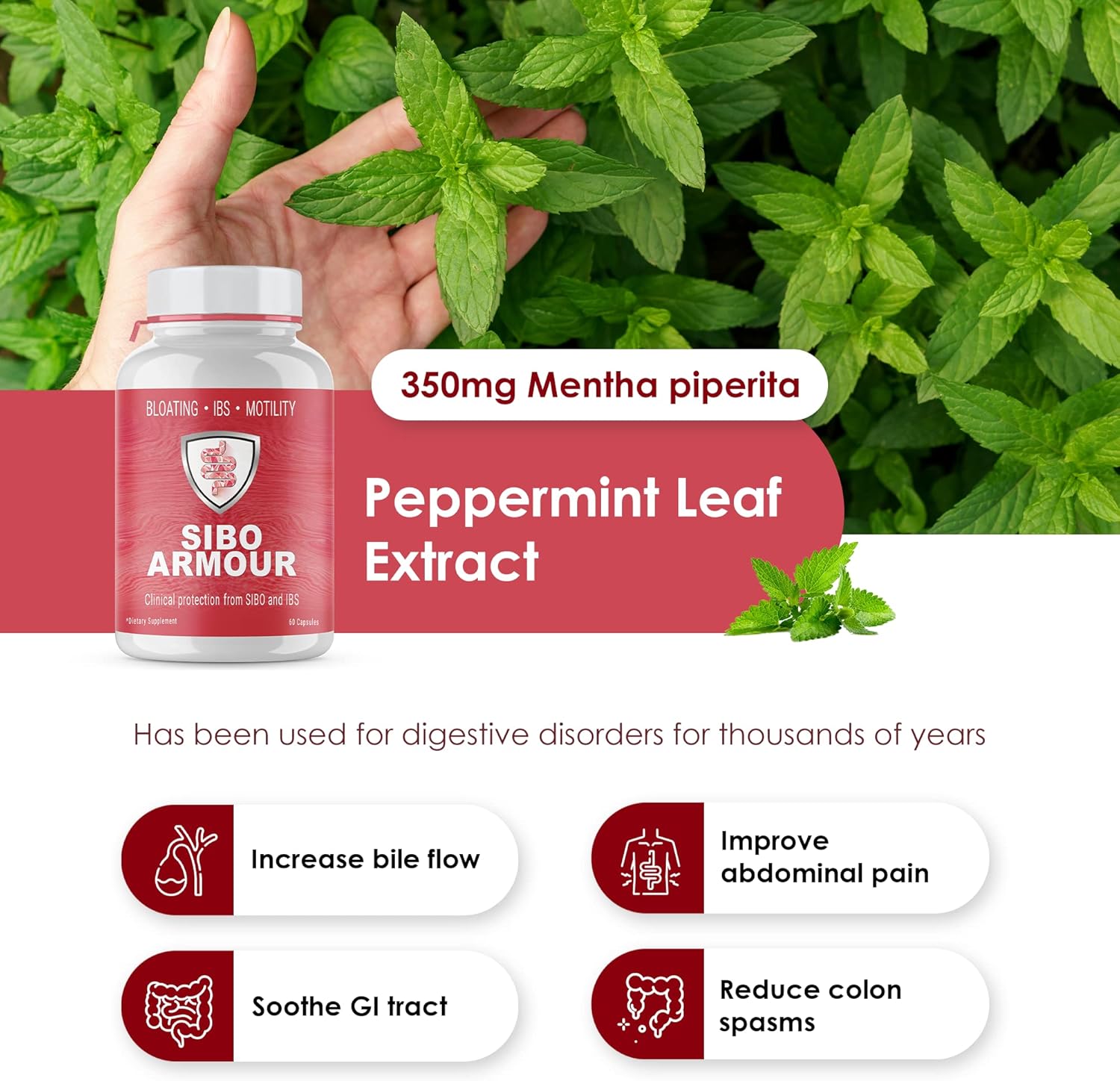Flight Armour Clinical Grade SIBO & IBS Relief Supplement with Delayed Release Peppermint - Effective Treatment for Bloating, Diarrhea, Leaky Gut, and Gas
