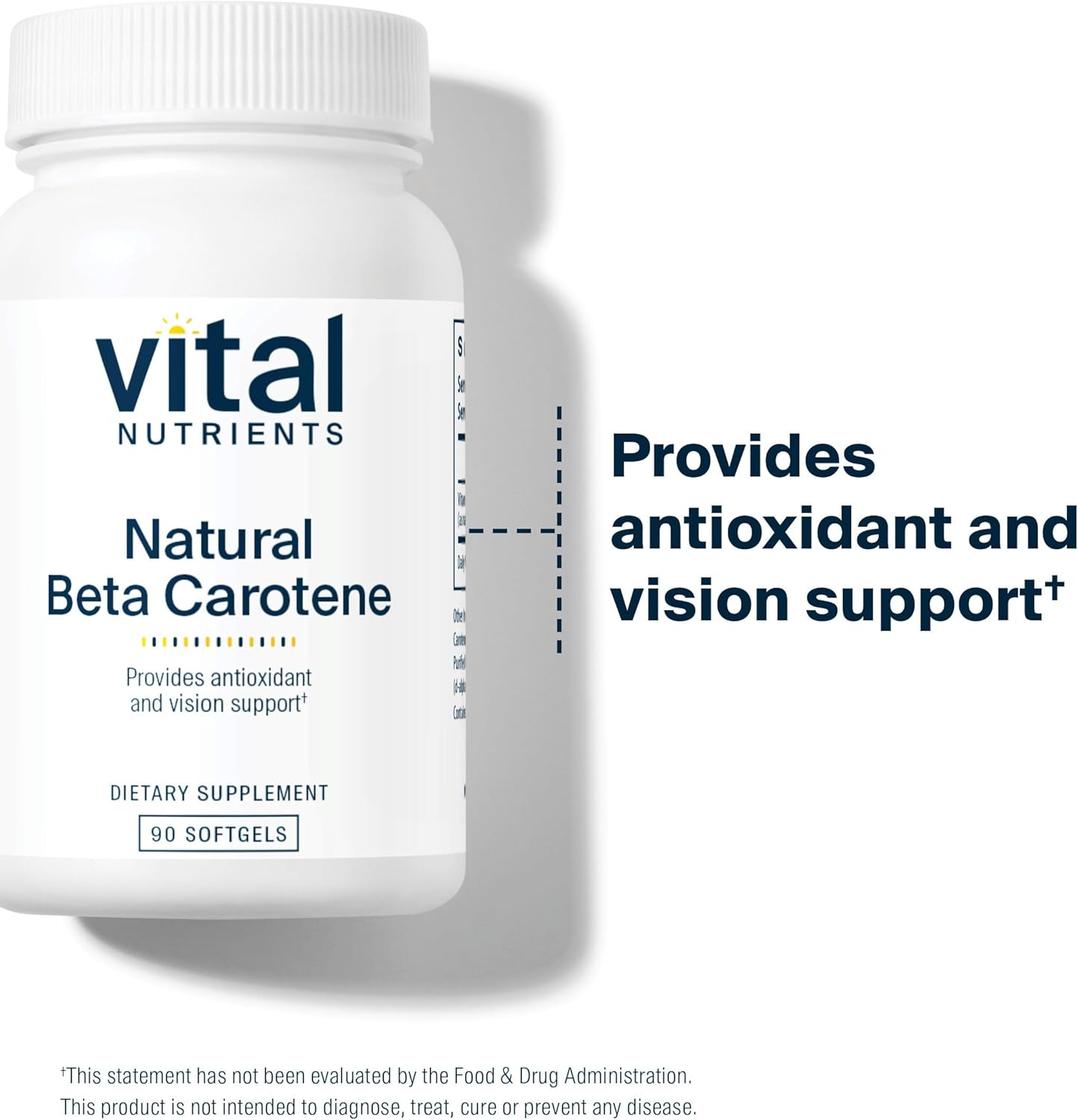 Vital Nutrients - Natural Beta Carotene - Precursor to Vitamin A - Antioxidant - Vision, Skin, and Reproductive Health Support - 90 Softgel Capsules per Bottle - 25,000 IU