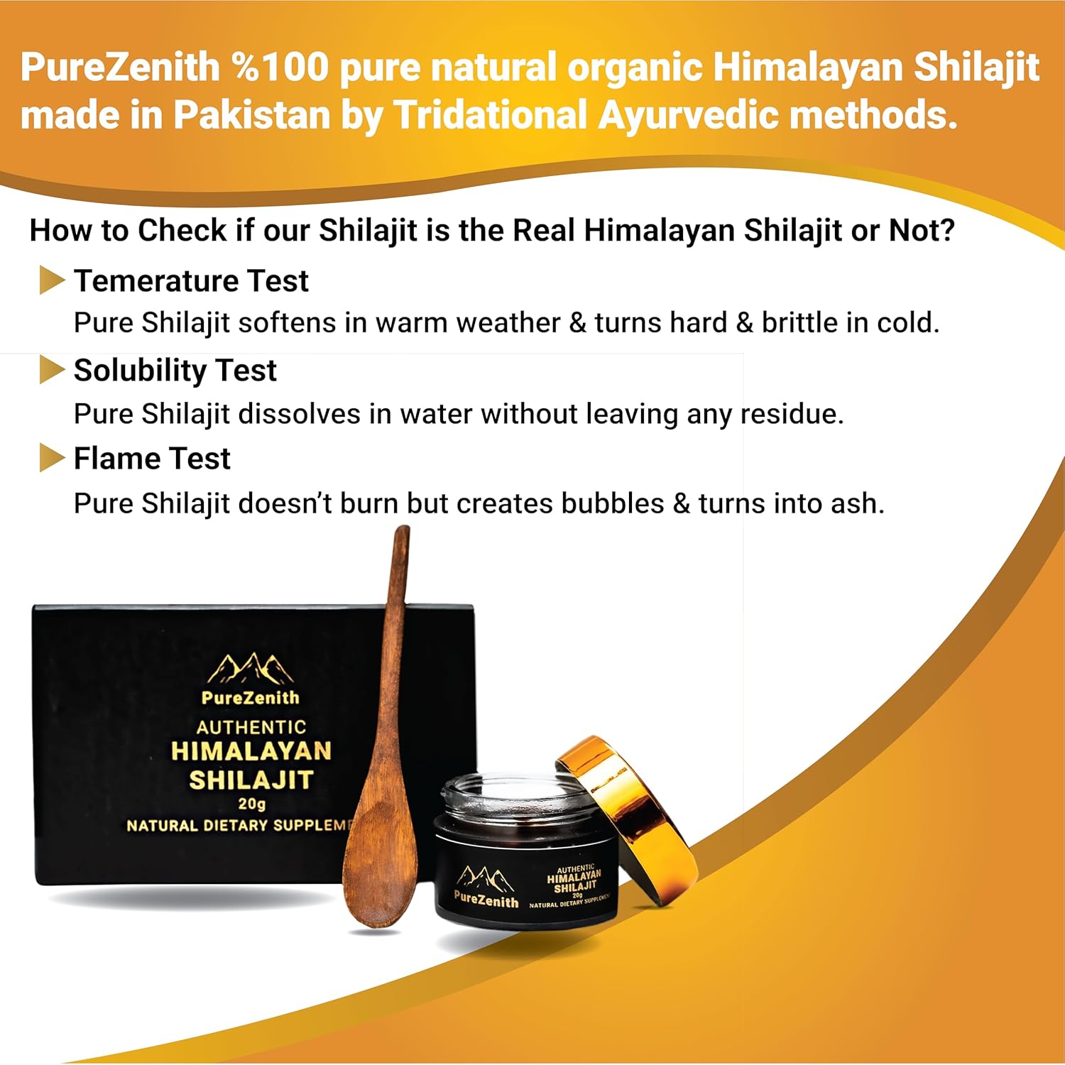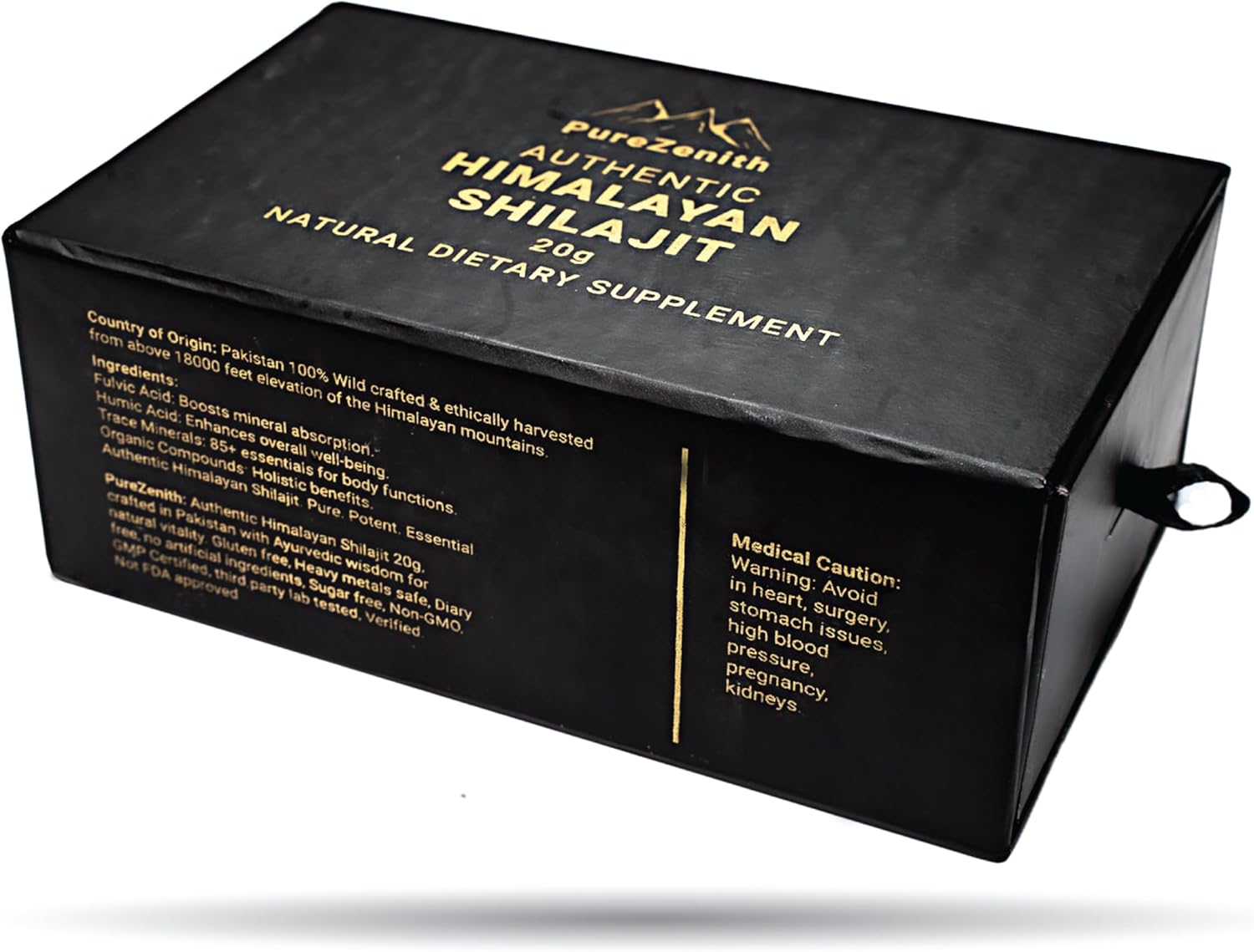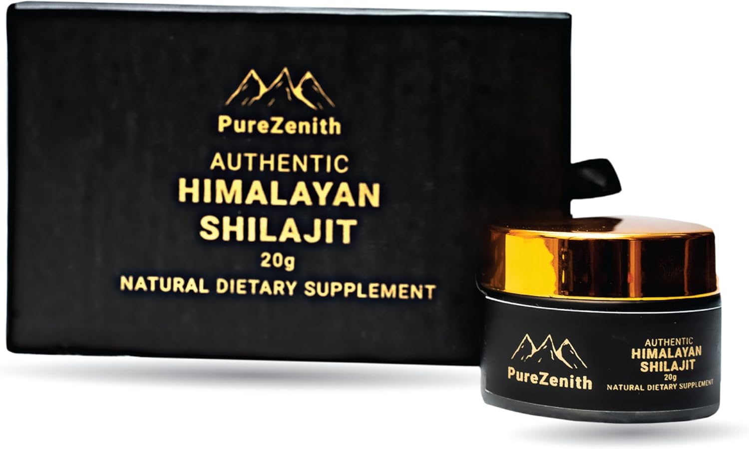 High Potency PureZenith Himalayan Shilajit Resin Supplement - 20g, 85+ Trace Minerals, Fulvic Acid, Boost Energy, Immune Support, Men & Women, Lab Tested