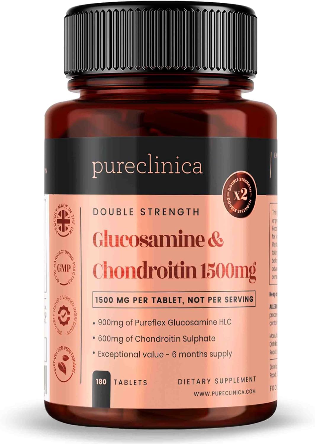 High Strength 1500mg Glucosamine HCL & Chondroitin 180 Tablets by pureclinica