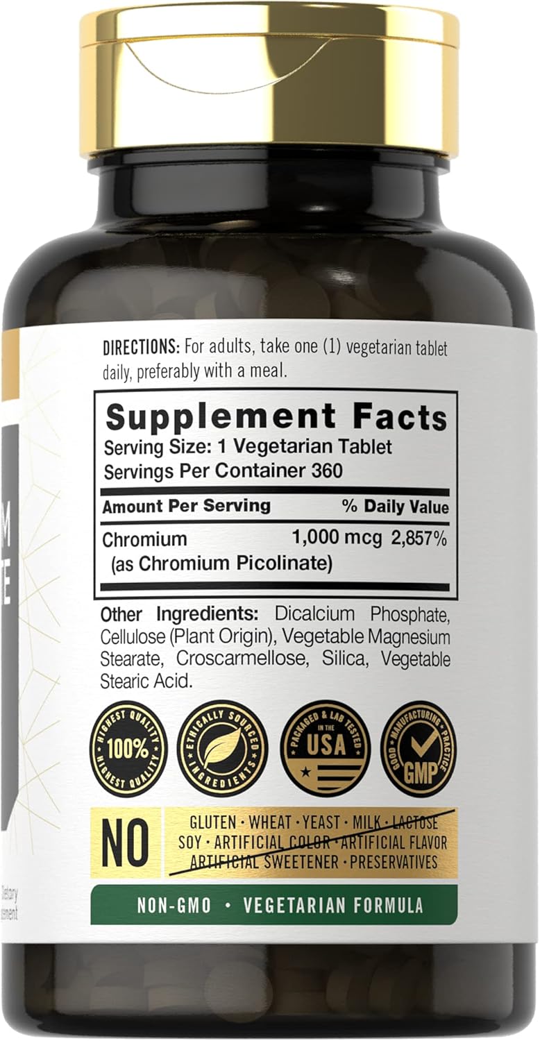 High Strength Chromium Picolinate 1000mcg | 360 Tablets | Vegetarian, Non-GMO, Gluten Free by Carlyle Ultra