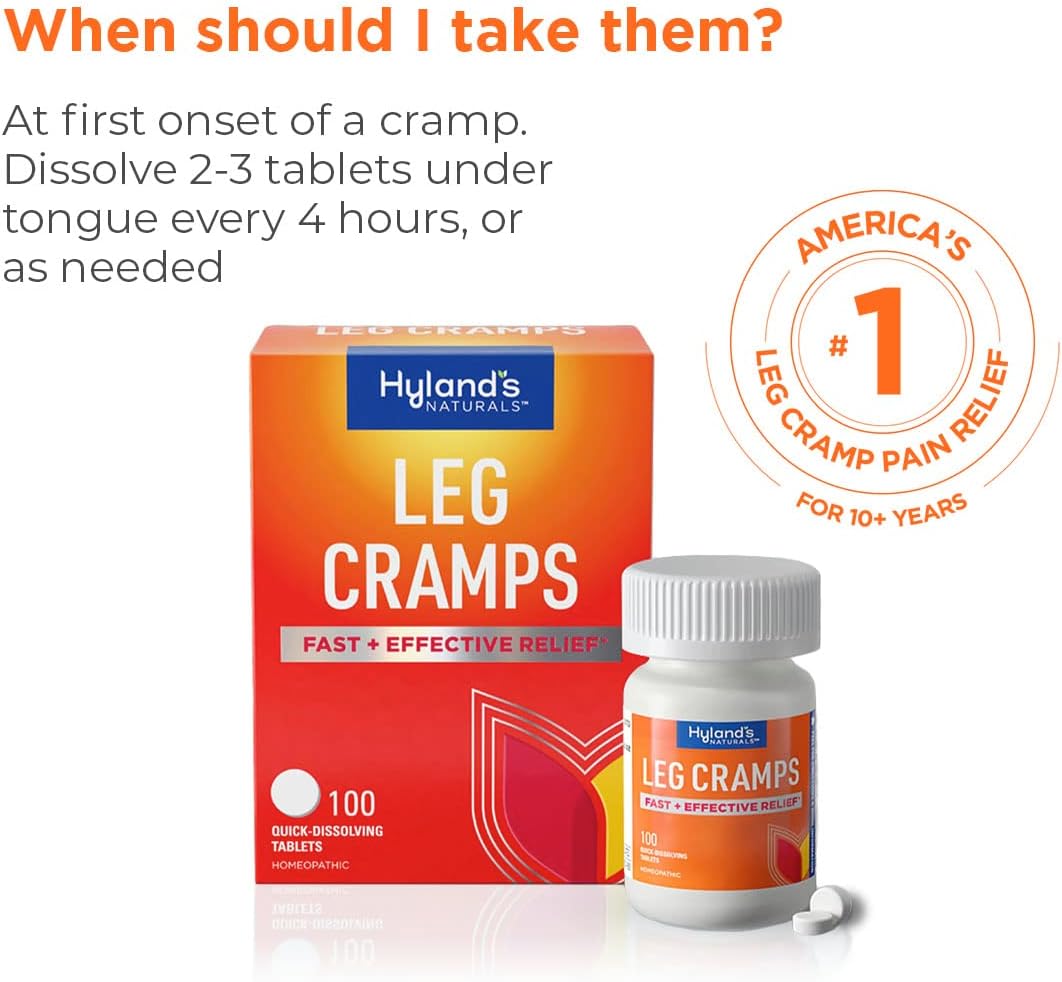 Hyland's Leg Cramp Tablets, Natural Relief of Calf, Leg and Foot Cramp, 200 Count. Temporarily relieves the symptoms of stiffness, pains in limbs, joints and legs, cramps in calves, feet and legs.