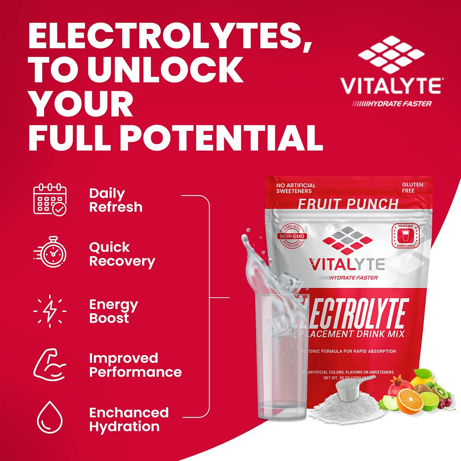- Rapid Energy Boost: With Vitalyte's Electrolyte Powder, you can quickly and easily recharge your batteries, leaving you feeling fresh and energized to tackle whatever the day throws your way.