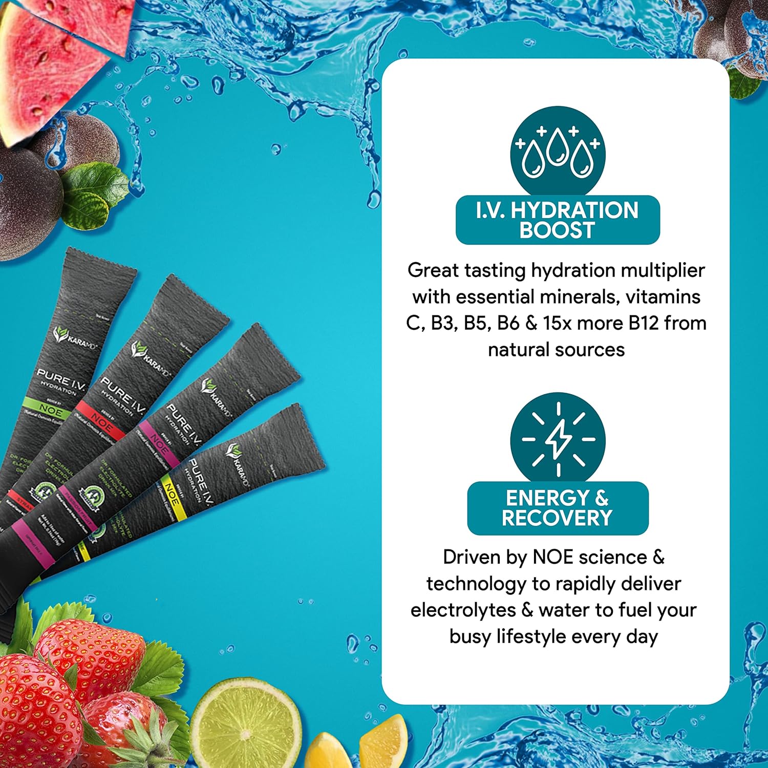KaraMD Pure I.V. Electrolyte Drink Mix Variety Pack - Hydrating Powder with Vitamins & Minerals - 16 Sticks - Refreshing Flavors