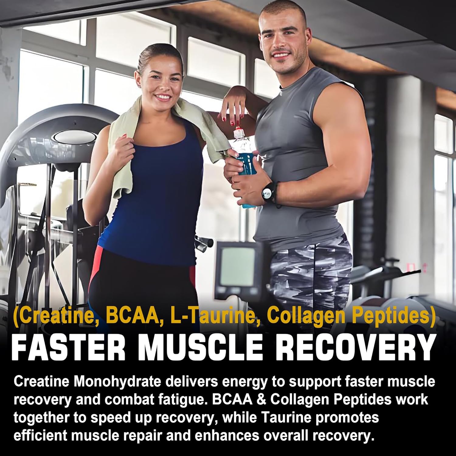 - Premium Formula & Maximum Potency: Each serving delivers a powerful blend of premium ingredients, including Creatine Monohydrate, BCAA, Collagen Peptides, L-Taurine, Vitamins B12 & D3, offering comprehensive support for your fitness journey. Formulated for peak performance, these gummies boost energy, strengthen muscle, speed recovery, support j❤ḭṇṭ health. With our Creatine Gummies, you can achieve your fitness goals faster and more effectively, unlocking your full potential with every workout