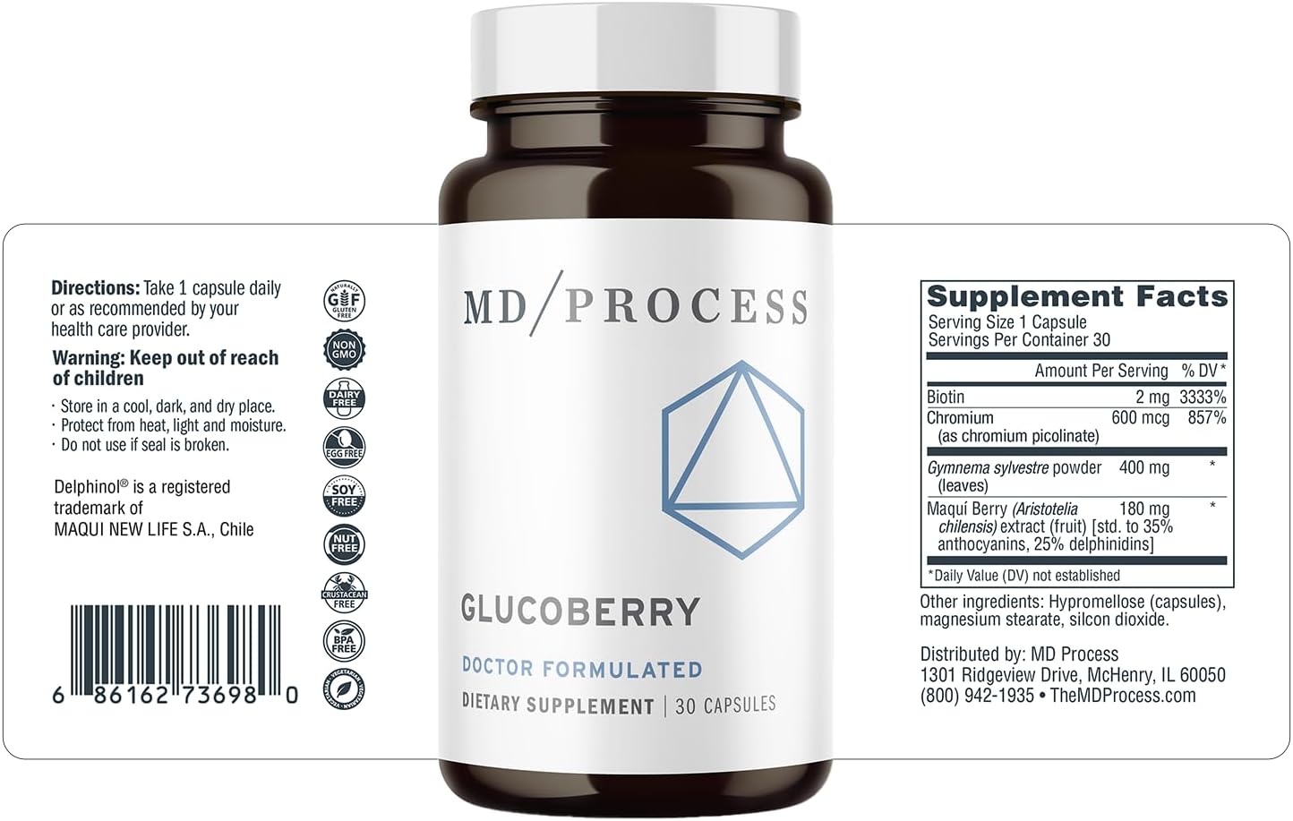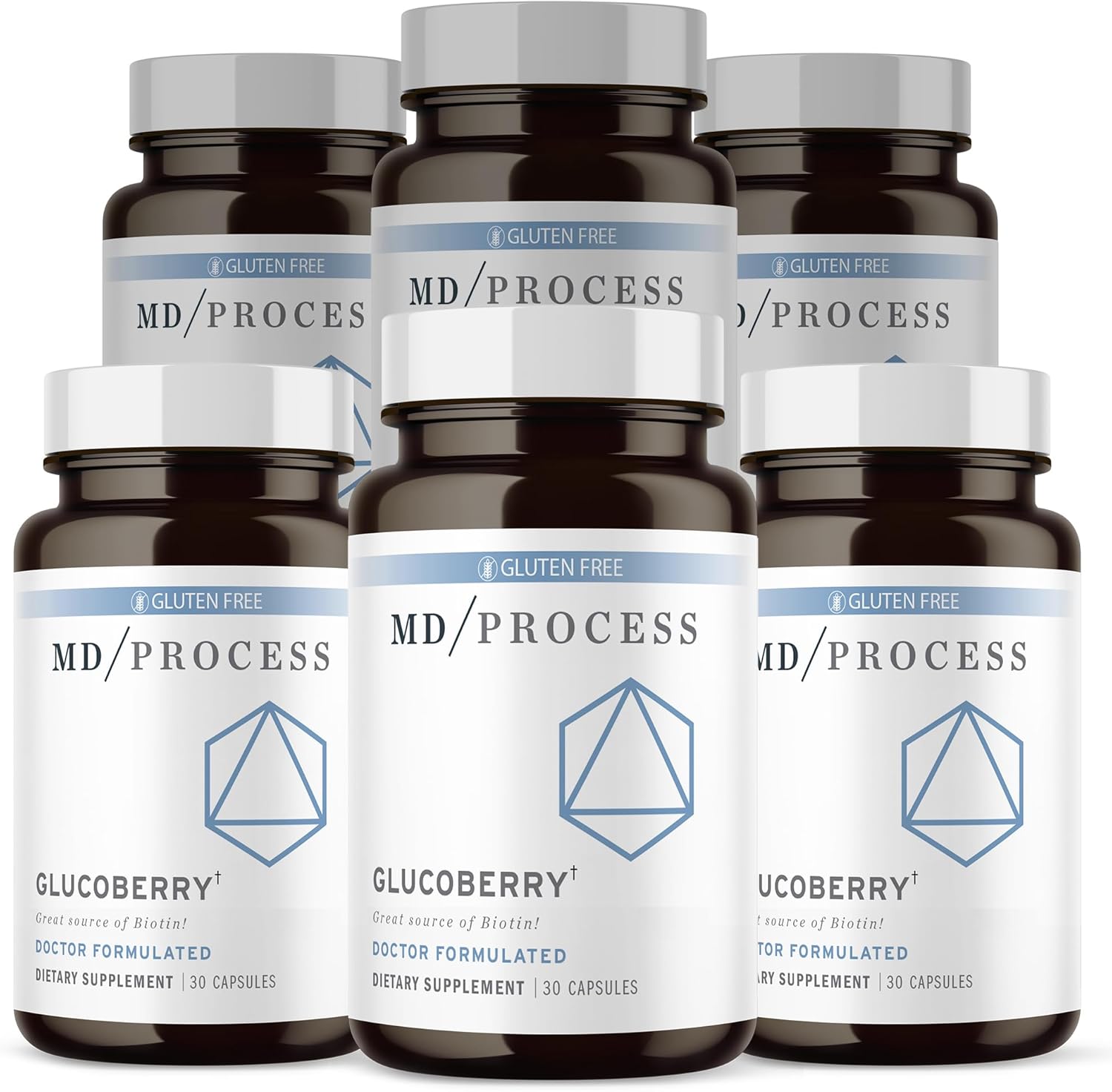 MD Process GlucoBerry Maqui Berry Extract Capsules with Chromium Picolinate, Biotin & Gymnema Sylvestre - Blood Health Support - Doctor Formulated - 30 Capsules, 6 Pack