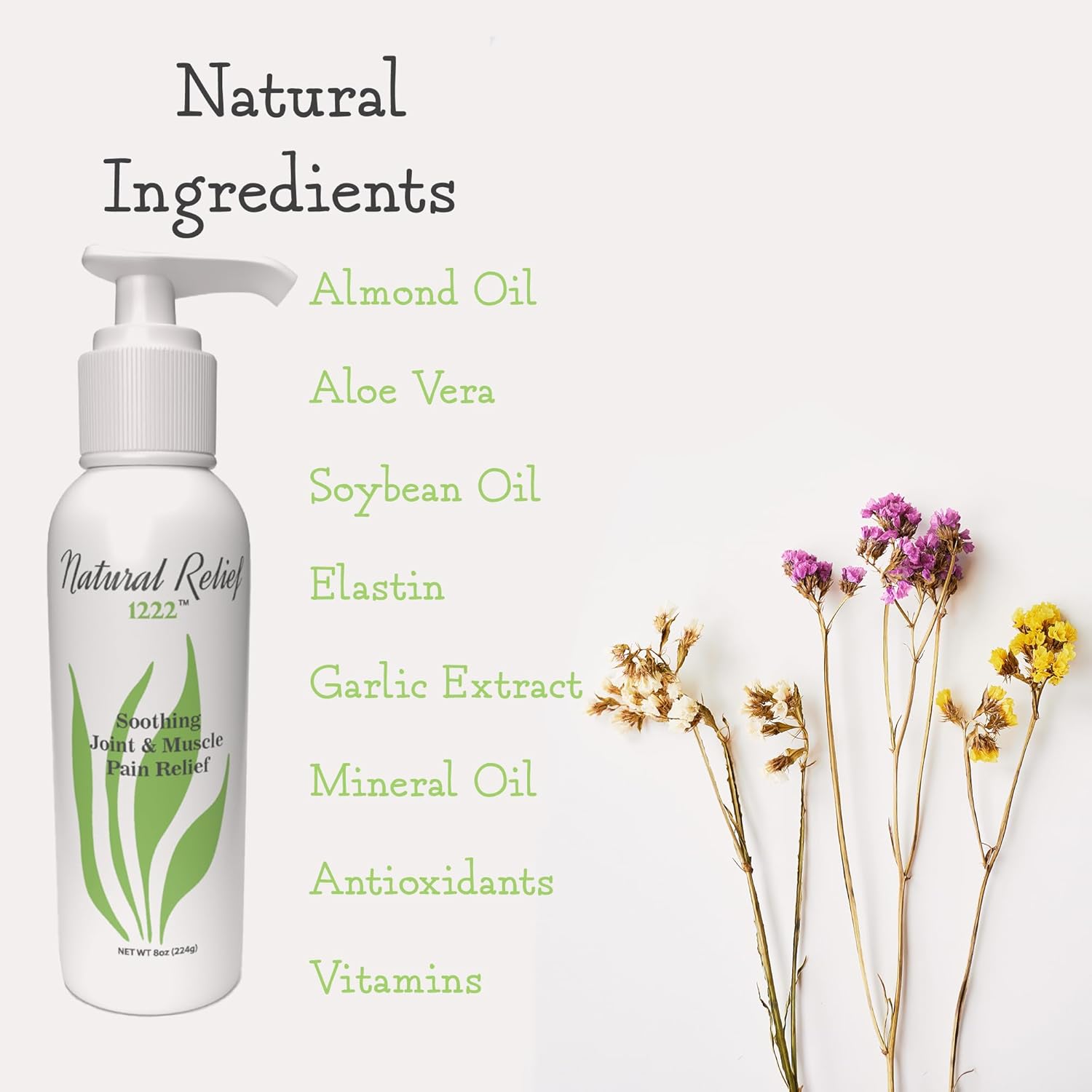 - NO HARMFUL SIDE EFFECTS : Natural Relief 1222 is made with plant based ingredients that offer targeted relief for joint and muscle pain without any harmful side effects, stomach upset, or drug interactions. Best of all, it’s safe to use as frequently as required to achieve the pain relief you need to return to the activities you love.
