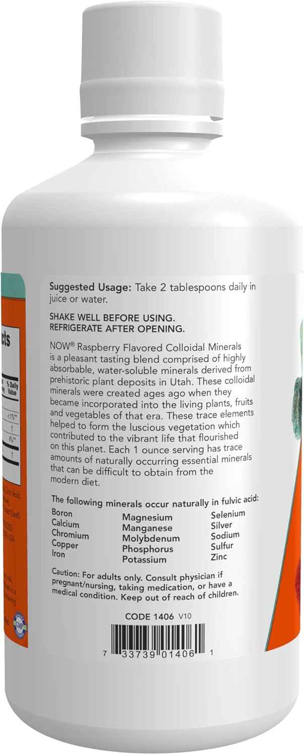 NOW Foods Colloidal Minerals Liquid Supplement, Raspberry Flavor, 32-Ounce - Plant Derived Essential Trace Minerals for Overall Health and Wellness