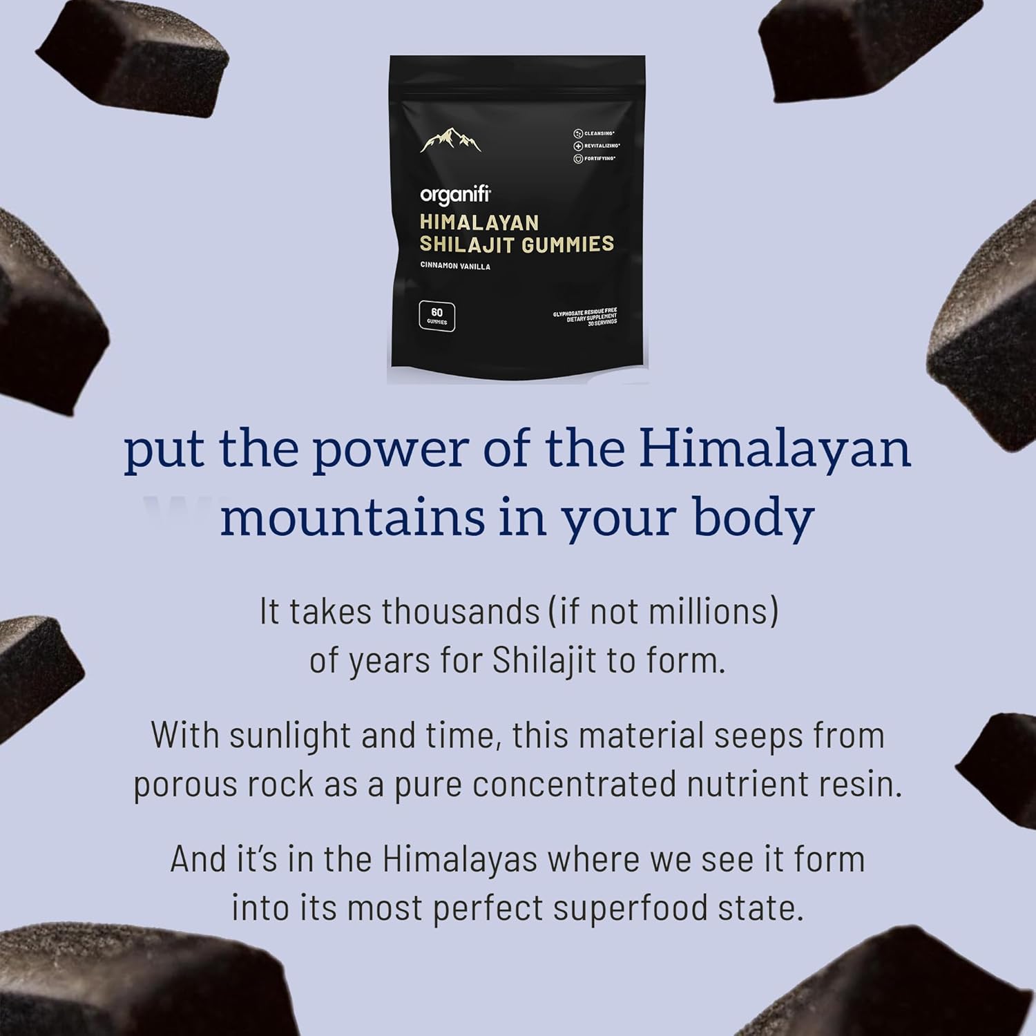 - Energizes Your Day: Organifi's natural Shilajit supports mitochondrial health and energy production, and its 40-plus trace minerals fuel your body. Rich in fulvic acid, humic acid, vitamins, enzymes, bioflavonoids, antioxidants, and metabolites, Shilajit Gummies can also increase your cellular energy, decrease fatigue, and more.