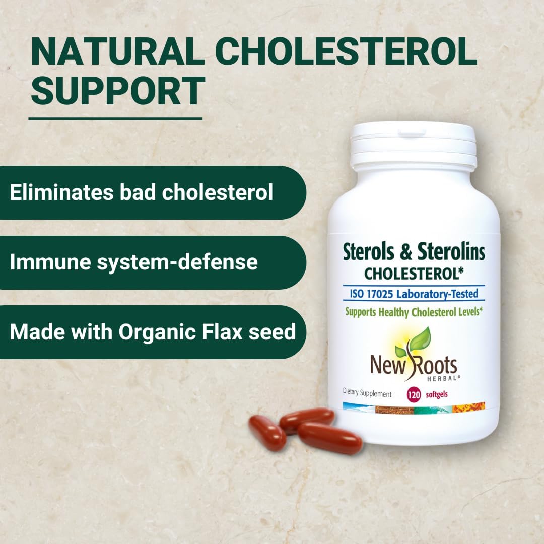 Plant Sterols and Sterolins Supplement with Organic Flaxseed - Cholesterol Support and Omega-3s - 120 Softgels
