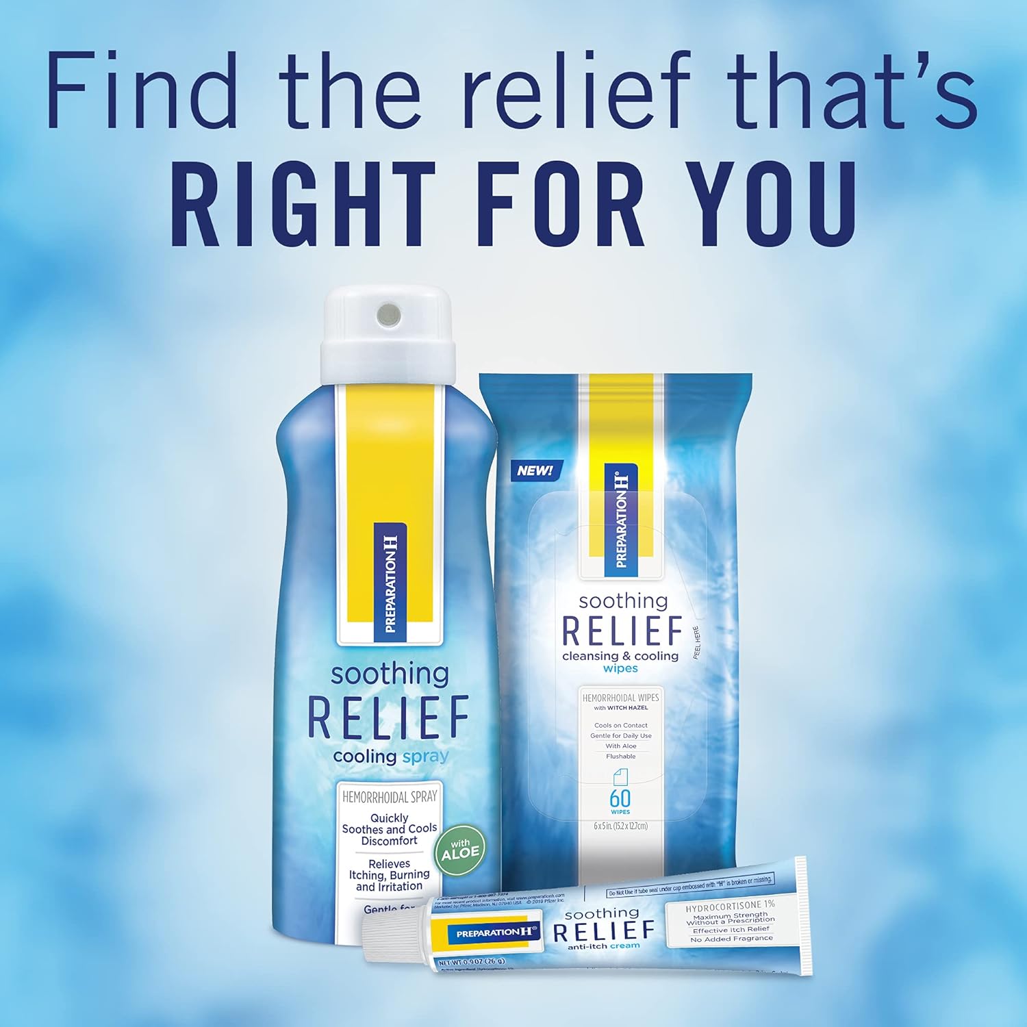 - This hemorrhoidal spray is the newest addition to our Soothing Relief line, which also includes Preparation H Soothing Relief Cleansing and Cooling Wipes