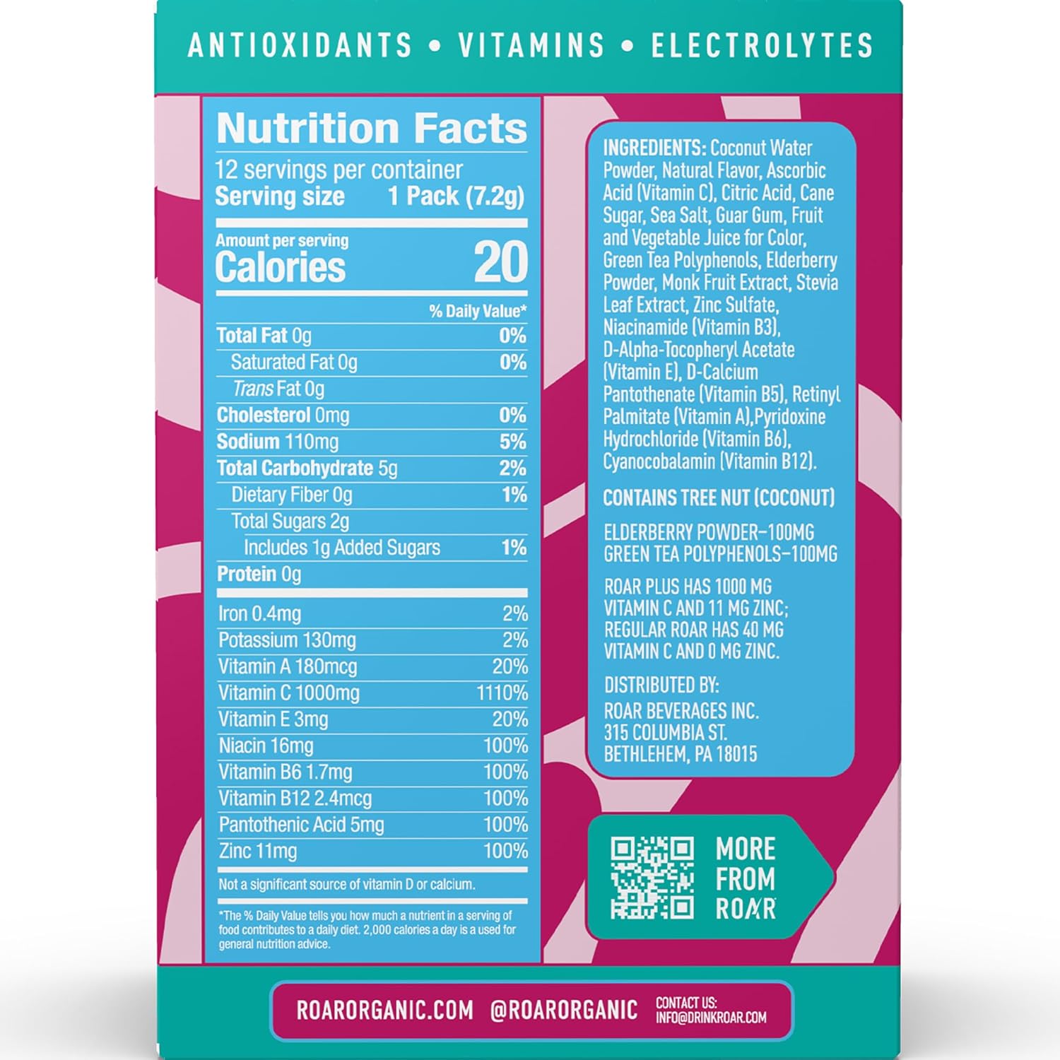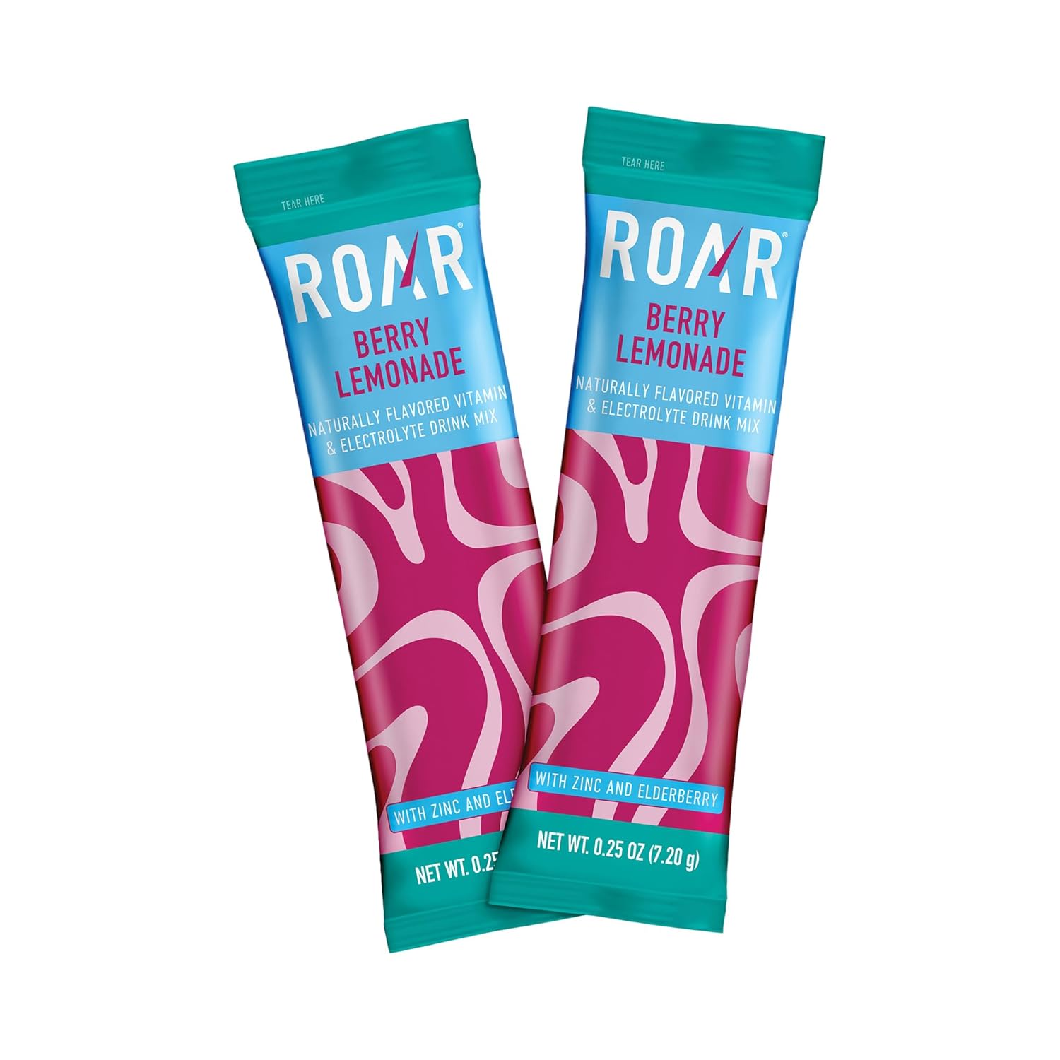 ROAR Complete Hydration Powder Plus with Zinc and Elderberry - Berry Lemonade Flavor - 24 Packets - Electrolytes, Non-GMO, Gluten Free