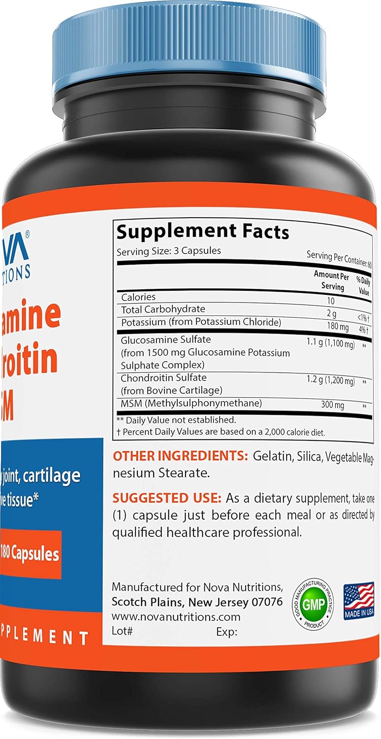 - Each 3 Capsules Contain Glucosamine Chondroitin MSM 2600mg/ 60 Serving per bottle - 180 Capsules per bottle.