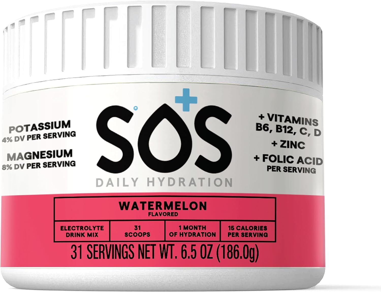 Watermelon Flavored SOS Hydration Electrolyte Powder - 31 Servings, Low-Calorie & Rapid Rehydration - Keto & Vegan Friendly - Made in USA