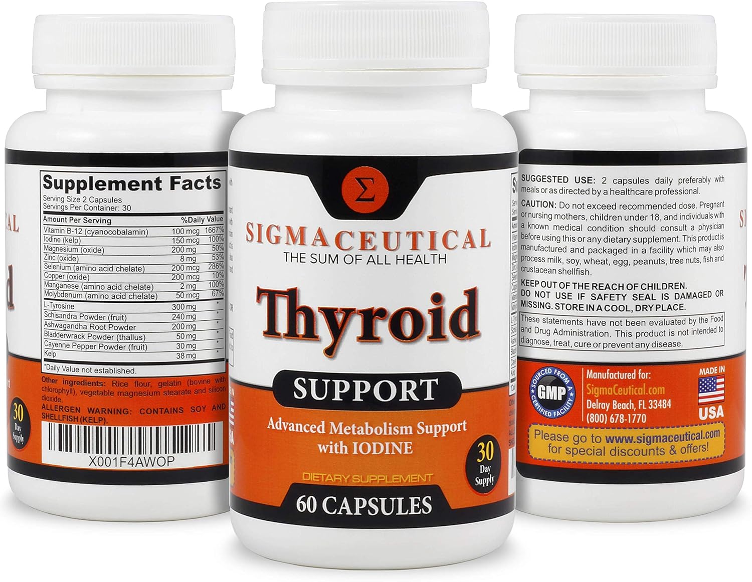 Women's Thyroid Support Capsules with Zinc, Selenium, Iodine, Ashwagandha & Kelp - 60 Supplement Capsules by Sigmaceutical