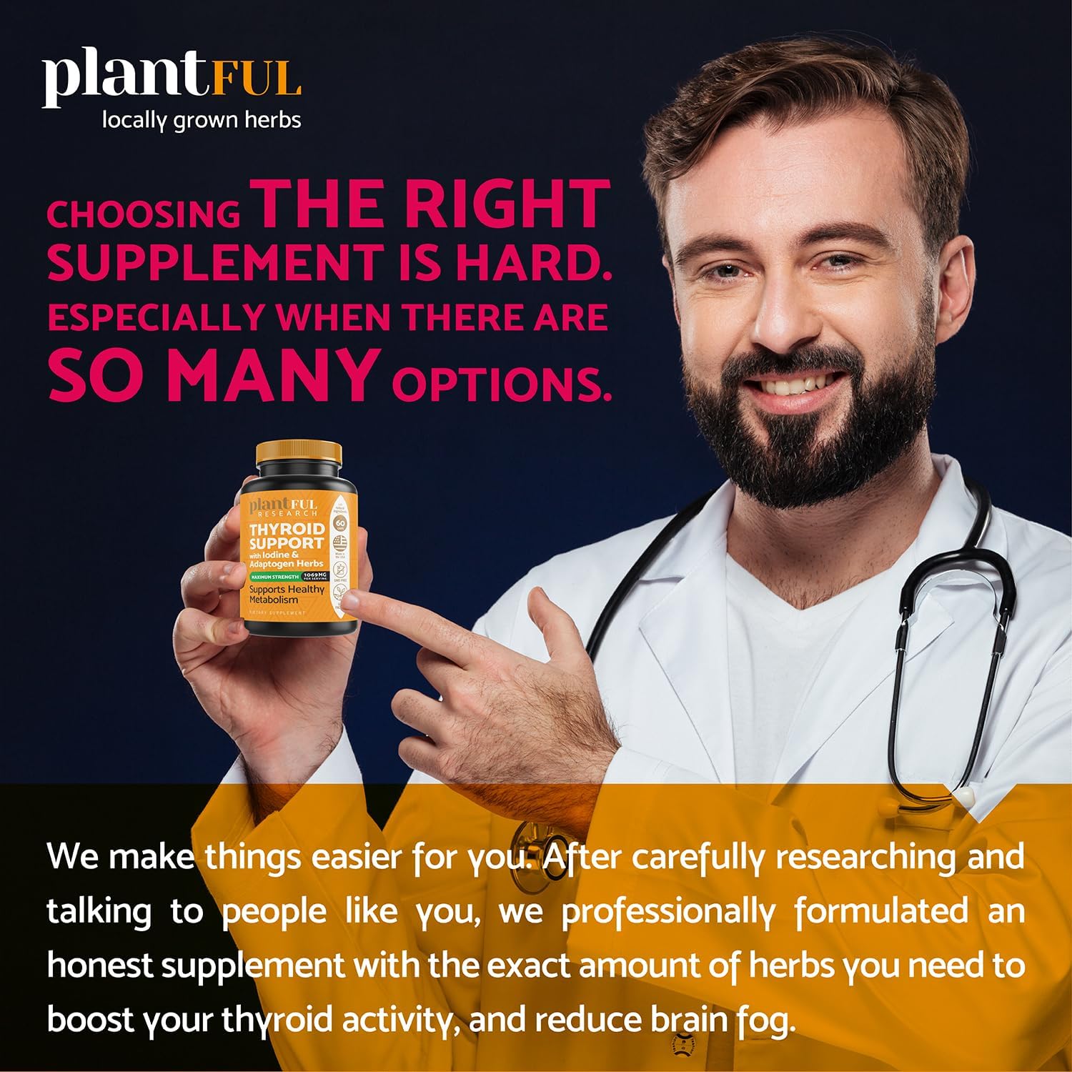 - CHOOSING THE RIGHT THYROID SUPPLEMENT IS HARD. Especially when there are so many options. We professionally formulated an honest thyroid support supplement for women and men with the highest-quality Non-GMO ingredients, produced in a GMP certified facility within the USA, and tested for purity.